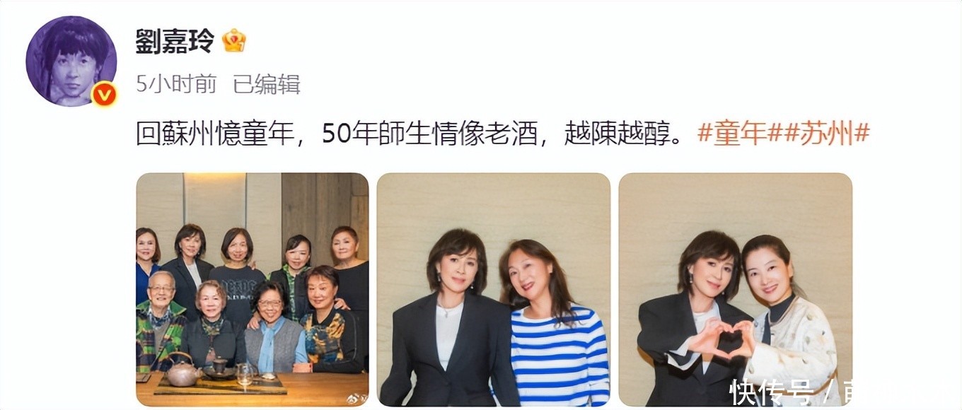 刘嘉玲回到家乡苏州忆童年,并晒出了与50年老同学的见面合影照,令人出乎意料的是刘嘉玲的状态没有与老同学们拉开差距,反而越发看着僵硬。